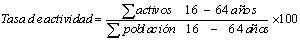 Se llama tasa de actividad de un grupo dado a la proporción de personas de ese grupo que forma parte de la población activa.