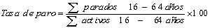 Se denomina tasa de paro de un grupo dado a la proporción de personas activas de ese grupo que se encuentran en situación de paro. Suele expresarse en porcentajes.