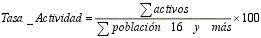 Se llama tasa de actividad de un grupo dado a la proporción de personas de ese grupo que forma parte de la población activa.
