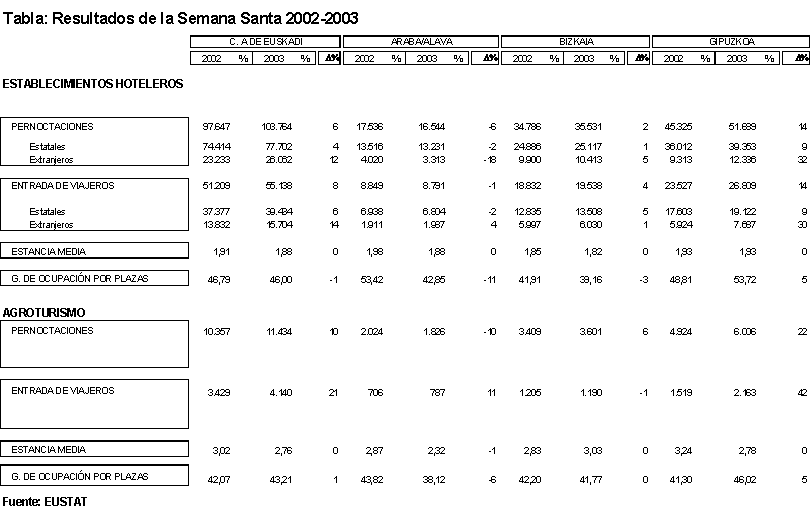 El grado de ocupación por plazas desciende notoriamente en Alava (once puntos porcentuales), en menor grado en Bizkaia (casi tres puntos), pero mejora su posición anterior en Gipuzkoa (más cinco puntos porcentuales pasando del 48,8% al 53,7%). Lógicamente, el grado de ocupación depende de dos factores: el número de pernoctaciones y el número de plazas ofertadas. Éstas han tenido una evolución positiva en el último período, aumentando sobre todo en Alava y Bizkaia.