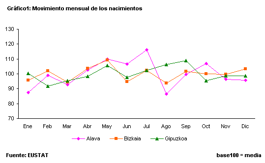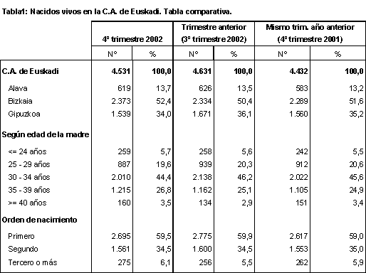 En la distribución de los nacimientos según la edad, se sigue manteniendo una clara preponderancia del grupo de madres de 30-34 años, entre las que se dan el 44,4% de los alumbramientos. A este grupo le sigue el inmediato superior de 35-39 años con el 26,8%, superando al grupo de 25-29 años que aporta el 19,6%, mientras que el de 20-24 años únicamente supone el 4,7%.