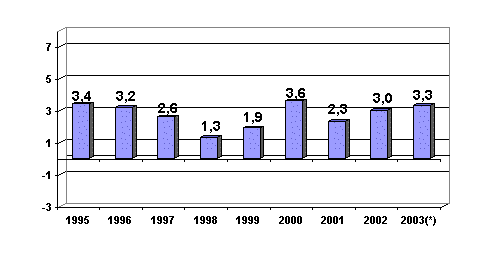 Entre los precios de las materias primas consumidas por el sector que han experimentado mayores tasas de inflación en junio de 2003 figuran: Cal, yeso y escayola (5,6%), Derivados del petróleo (2,7%) y Piedra elaborada (1,8%). En sentido contrario, han registrado reducciones en sus precios medios mensuales las materias primas de Productos asfálticos (-4,2%), Energía eléctrica (-2,0%) Vidrio (-1,6%), entre otras.