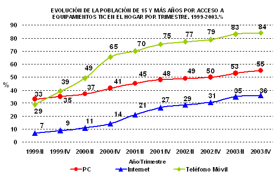 Se recuperan de forma notable –con un incremento del 25,6%-, las conexiones en otros lugares diferentes como bibliotecas, centros cívicos, cibercafés, etc., aunque no han llegado aún a los niveles de finales del 2002; en esas fechas los lugares alternativos eran utilizados por el 16,4% de los internautas, frente al 12,3% actual.