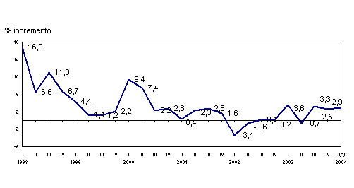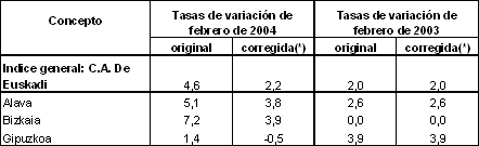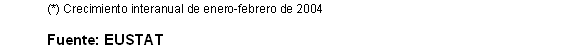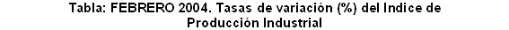 En el mes de febrero de 2004, las variaciones interanuales más positivas, en términos absolutos, han correspondido a los sectores de "Refino de petróleo" (100,3%), "Energía eléctrica, gas y agua" (17,7%), "Caucho y plástico" (7,5%), "Minerales metálicos y no metálicos" (4,8%) y "Material de transporte" (4,7%). En contraposición, los sectores que han experimentado tasas interanuales más negativas han sido "Industria del cuero y calzado" (-15,8%), "Industria de la alimentación” (-8,9%), "Otras manufactureras" (-8,5%) y "Material eléctrico" (-1,8%).