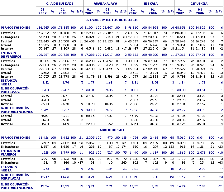 Entre los viajeros estatales se registra un aumento de los provenientes de Cataluña, Aragón, Canarias, Castilla y León, Comunidad Valenciana, Galicia y Navarra, entre otros. Bajan los procedentes de Madrid, Baleares, Galicia y la propia C.A. de Euskadi, principalmente. Entre los extranjeros, suben los de Francia, Italia, Portugal, Iberoamérica y USA-Canadá y descienden los provenientes de Alemania, Austria y Dinamarca, entre otros.