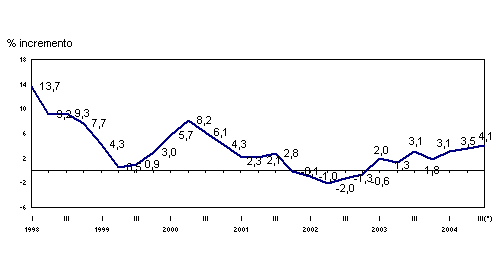 El acumulado de los siete primeros meses de 2004 registra un crecimiento del 4,6% sobre el mismo período del año anterior