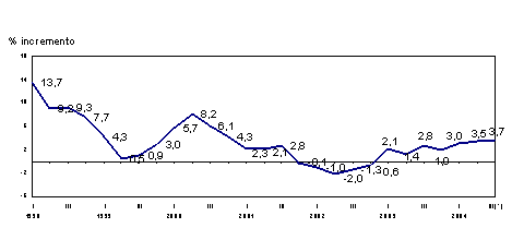 El acumulado de los ocho primeros meses de 2004 registra un crecimiento del 4,8% sobre el mismo período del año anterior.