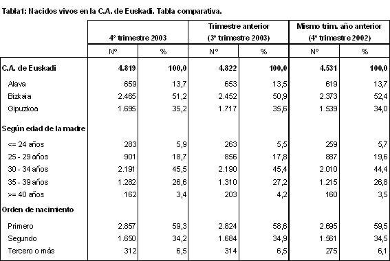 En la distribución de los nacimientos según la edad de la madre, se sigue manteniendo una clara preponderancia del grupo de madres de 30-34 años, entre las que se dan el 45,5% de los alumbramientos. A este grupo le sigue el inmediato superior de 35-39 años con el 26,6%, superando al grupo de 25-29 años que aporta el 18,7%, mientras que el de 20-24 años únicamente supone el 4,8%.