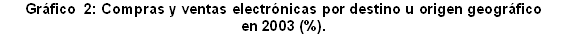 En cuanto al número de establecimientos que realizan comercio electrónico, se puede constatar un crecimiento en el porcentaje de los que lo realizan, el cual habría subido del 4,4% observado en 2002 al 5,1% en 2003. El motivo de este incremento se debe al aumento de empresas que compran por vías electrónicas y que alcanzan ya el 4,3% de ellas y, en menor medida, a las empresas que realizan ventas por las mismas vías y que suponen el 1,4%.
