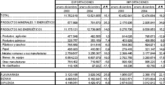 El saldo de productos no energéticos, sin embargo, fue superior al de una año antes, cifrándose en 3.201,1 millones de euros, frente a los 2.898,4 millones de 2003. La tasa de cobertura de productos no energéticos, en cambio, disminuye casi punto y medio, pasando de 135,5% en 2003 a 133,6% en 2004.