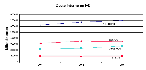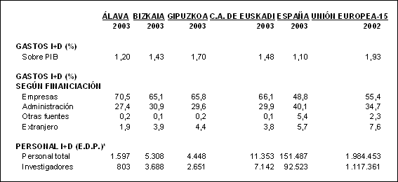 El incremento experimentado por Gipuzkoa queda reflejado igualmente al comparar el gasto en I+D como porcentaje del PIB, valor que para el conjunto de la C.A. de Euskadi se situó en el 1,48%. En efecto, en Gipuzkoa este indicador fue del 1,70%, mientras en Bizkaia alcanzó el 1,43% y en Álava el 1,20%, siendo en los tres territorios superior a la media española (1,10%)