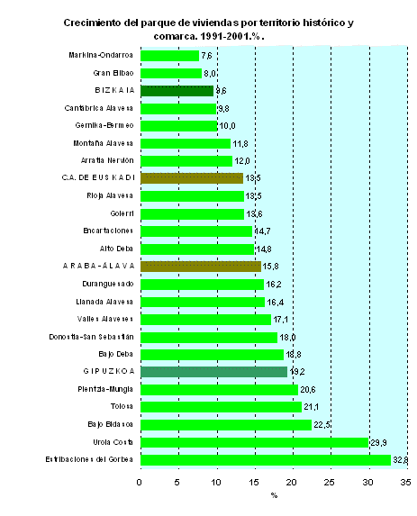 De las viviendas de Ortuella, el 19,7% padece ruido, contaminación y suciedad en el entorno, siendo el municipio con mayor porcentaje de viviendas con un entorno con esas carencias. Le siguen Pasaia con el 15,2% y Barakaldo con el 14,5%. En Pasaia los barrios más afectados son el de San Juan Ensanche con un 21,9% de viviendas afectadas y San Pedro Azkuene con el 15,9%. En Barakaldo, Lutxana con un 35,3% de las viviendas, Burceña con el 35,1% y El Regato con un 30,3%, resultan ser los barrios más problemáticos en cuanto a medio ambiente.