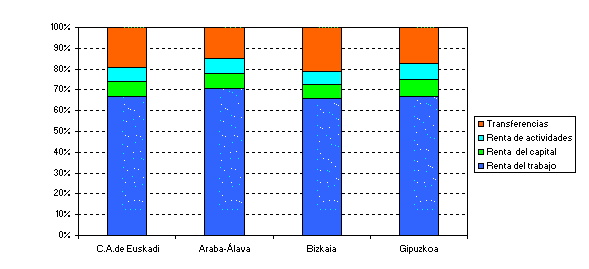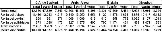 En cuanto a las personas ocupadas, éstas cuentan con una renta media personal de 18.678 euros. Por profesión, los directores gerentes tienen las rentas más elevadas, concretamente 28.836 euros, seguidos por los profesionales y técnicos, con 27.110 euros. Por debajo de la media de las personas ocupadas y muy alejados de ella, se encuentran los trabajadores no cualificados, cuya renta media es de 11.169, los trabajadores de servicios de restauración y comerciantes, con 11.321 euros, y, por último, los agricultores y pescadores, con 10.728 euros.