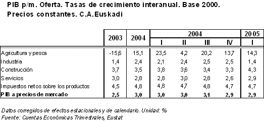 El sector Industrial, de fuerte implantación en la estructura de la economía vasca, ha registrado una tasa interanual bastante más modesta, del 1,4%. Por otra parte, presenta una tasa intertrimestral negativa del 0,3%, poniendo de manifiesto una visible desaceleración respecto al último trimestre del año anterior.