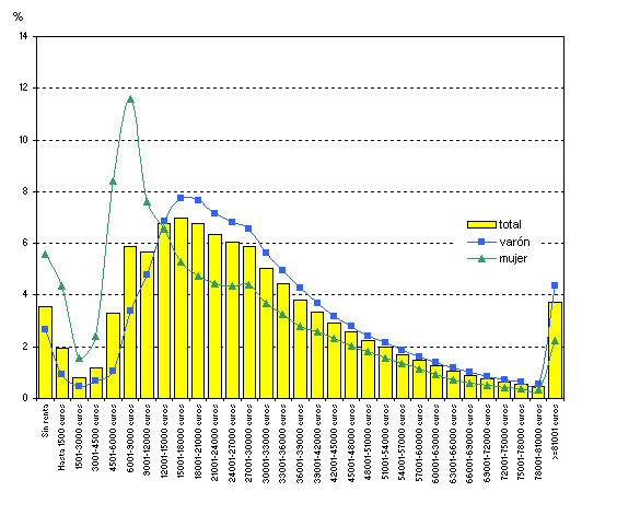 En lo que respecta al tipo de familia, lógicamente, son las familias polinucleares (de dos o más núcleos) y las ampliadas (compuestas por un núcleo familiar y una o varias personas) las que cuentan con las rentas familiares más elevadas, 47.841 y 39.767 euros de renta familiar, respectivamente. Les siguen las familias nucleares con hijos, cuya renta familiar media es de 39.367 euros. A cierta distancia están las familias nucleares sin hijos, con 25.432 euros; las familias compuestas (que carecen de núcleo familiar y están compuestas por dos o más personas), con 24.205 euros; las familias monopaternales, con 24.121 euros; y, finalmente, las familias unipersonales, con una renta familiar media de 14.126 euros.