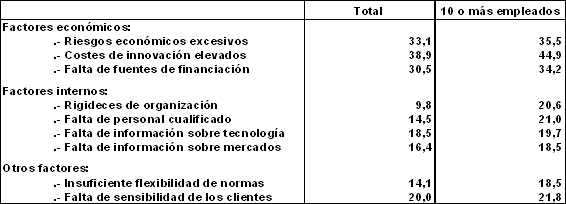 Por último, entre las empresas innovadoras, durante el período 2001-2003, las que han usado alguna patente u otros métodos de protección para sus invenciones o innovaciones suponen el 22,1%. Así, en ese período, el 8,0% solicitó alguna patente y el 5,6% tenía alguna patente en vigor a finales de 2003. En cuanto a otros métodos de protección, en el período citado, el 15,6% de las empresas innovadoras han usado alguno de ellos. Entre estos últimos destacan las marcas de fábrica, los derechos de autor, etc.
