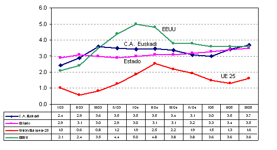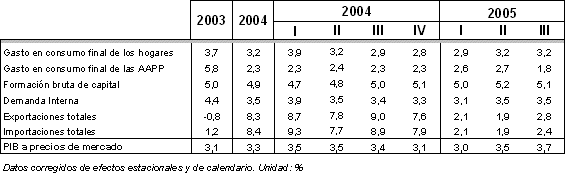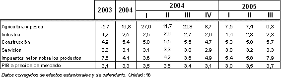 Los servicios de mercado cifran su evolución interanual en un crecimiento del 3,6%, superando los resultados interanuales del primer trimestre (3,2%) y segundo trimestre (3,5%). Su trayectoria intertrimestral marca una progresión en el tercer trimestre del 0,6%, menor al 1,3% del segundo período trimestral. Los servicios de no mercado presentan un perfil interanual más moderado del 2,0%, tanto en el segundo trimestre como en el tercero, si bien se observa una ligera aceleración intertrimestral (0,5%).