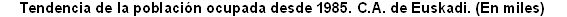 El número de parados, es decir, personas que están buscando empleo, hacen gestiones activas de búsqueda y además están disponibles para trabajar, se estima en 50.400 en este primer trimestre, 1.300 personas más que hace tres meses. Por territorios históricos, en Álava, con un total de 6.600, se produce un aumento de 2.900 personas, aumentando su tasa hasta el 4,5%, y en Gipuzkoa se estiman 300 personas más en paro que hace tres meses pero con la tasa más favorable de los tres territorios (3,3%). Por el contrario, en Bizkaia se contabilizan 32.800 parados, 1.900 menos que hace tres meses, pero manteniendo todavía la tasa más desfavorable (6,3%).