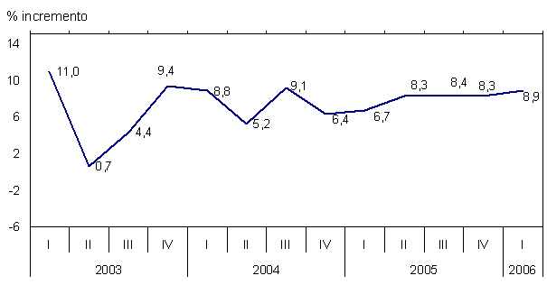 En el primer trimestre de 2006, la actividad de la construcción en la C.A. de Euskadi experimentó un crecimiento nominal del 8,9% con respecto al mismo trimestre del año 2005, en términos homogéneos de calendario laboral, según datos elaborados por EUSTAT.