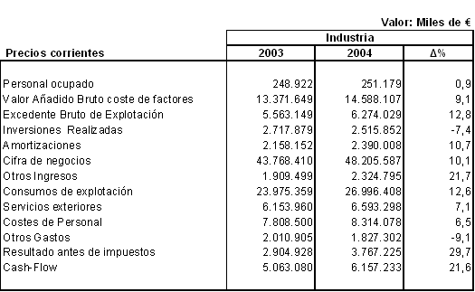 El empleo industrial sigue creciendo, aunque su ritmo va reduciéndose. Creció un 1,2% en el 2003 y ha crecido también en el 2004, aunque a una tasa inferior, el 0,9%. En 1994 la industria ocupaba a 192.274 personas y en el 2004, diez años más tarde, la ocupación industrial llegó a 251.179 empleos, lo que significa un incrementado de más de 58.000 personas, es decir, un 30% más de ocupación en una década.