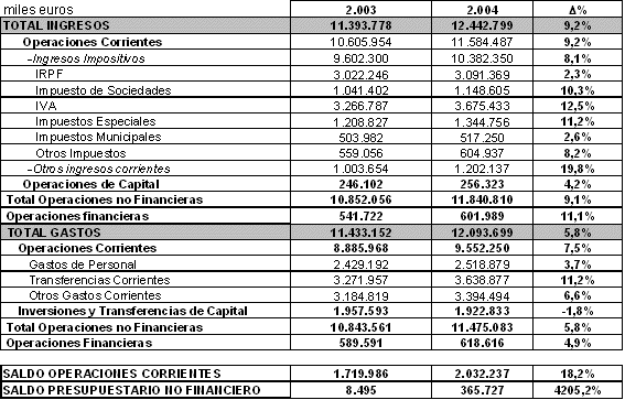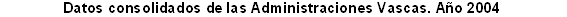 Los gastos corrientes de las Administraciones Vascas -formadas por el Gobierno Vasco, las Diputaciones Forales y las Administraciones Municipales, junto a sus correspondientes Organismos Autónomos y Entidades supramunicipales- experimentaron un crecimiento del 7,5% en el ejercicio contable de 2004, según datos elaborados por EUSTAT. El gasto total soportado ascendió a 9.552,2 millones de euros (+5,8%), mientras que los ingresos corrientes se elevaron a 11.584,4 millones, con una tasa de aumento anual del 9,2%, en el mismo período de 2004.