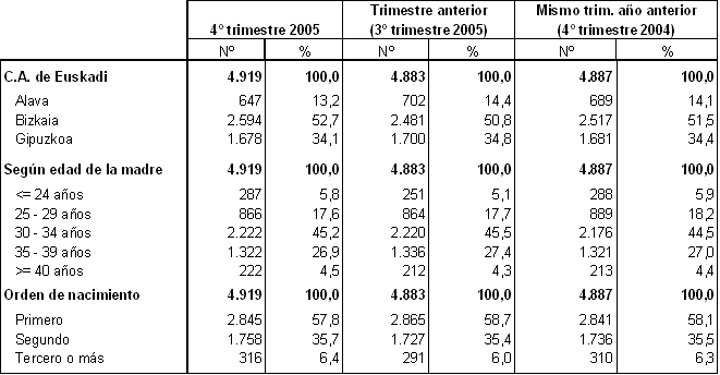 En la distribución de los nacimientos según la edad, se sigue manteniendo una clara preponderancia del grupo de madres de 30-34 años, entre las que se da el 45,2% de los alumbramientos. A este grupo le sigue el inmediato superior de 35-39 años con el 26,9%, superando al grupo de 25-29 años que aporta el 17,6%, mientras que el de 20-24 años únicamente supone el 5,8%.
