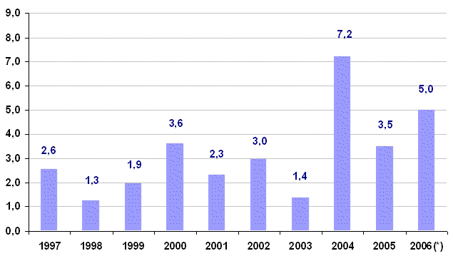 Entre los precios de las materias primas consumidas por el sector que han experimentado mayores tasas de inflación en el conjunto de los últimos doce meses figuran: Energía eléctrica (22,9%), Productos asfálticos (18,5%), Derivados del petróleo (12,3%), Hierro y acero (13,2%) y Explosivos y gases (7,3%). Por otra parte, han registrado reducciones, o menores incrementos en sus precios interanuales (julio de 2006 sobre julio de 2005) las materias primas de Productos cerámicos (-0,1%), Piedra elaborada (0,0%), Madera y corcho (0,7%) y Pinturas y barnices (0,8%).
