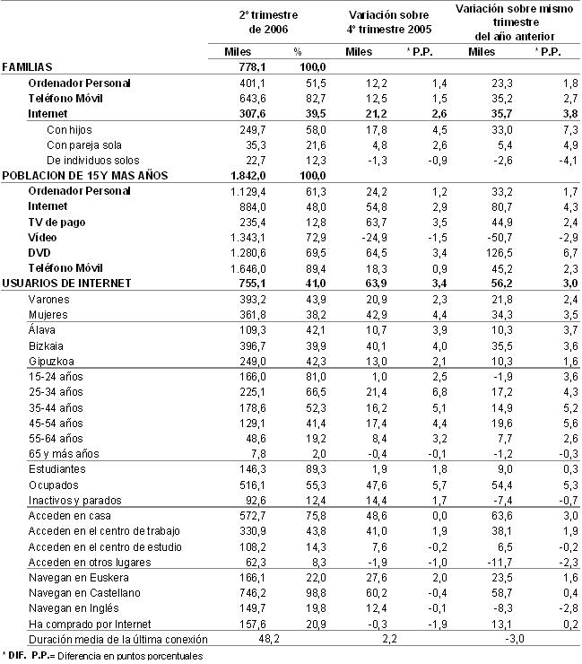 En cuanto a la evolución por territorios históricos, y en paralelo al crecimiento en el último semestre de las conexiones de Internet en el hogar, el número de usuarios aumenta sensiblemente más en Bizkaia, ya que dos de cada tres nuevos usuarios son de este territorio. No obstante, Gipuzkoa sigue encabezando las tasas de usuarios con un 42,3% y un crecimiento de 2,1 puntos porcentuales, seguida de Álava con un 42,1% y un aumento de 3,9 puntos. Bizkaia, con un incremento de 4 puntos porcentuales de internautas, sigue teniendo la tasa más baja, un 39,9%.