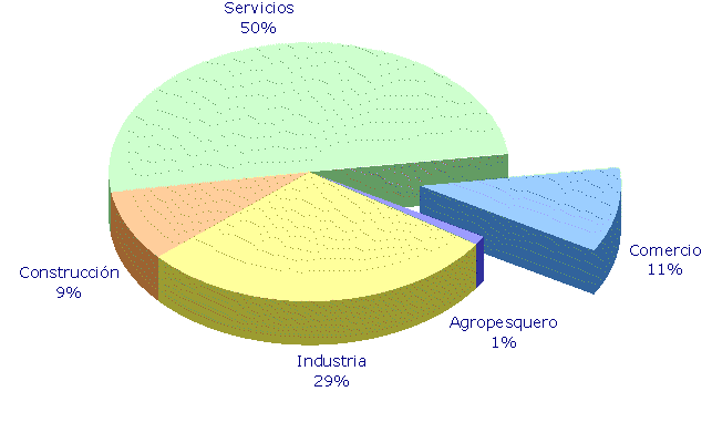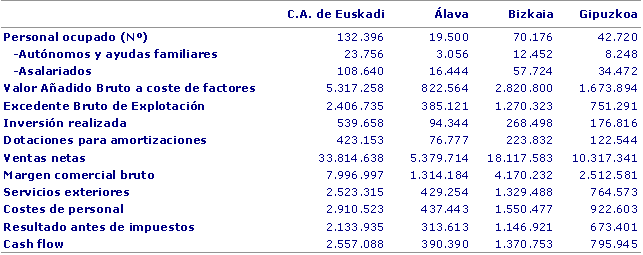 El sector comercial, compuesto por los subsectores de comercio al por mayor, comercio al por menor y la venta y reparación de automóviles, experimentó en el quinquenio que va de 2000 a 2005 un crecimiento nominal del 36,9%, ocho décimas más que el VAB generado por el conjunto de la economía (36,1%). Su aportación al PIB de la C.A. de Euskadi se situó en el 11%, un punto por encima de lo que suponía en el año 2000 (9,9%).
