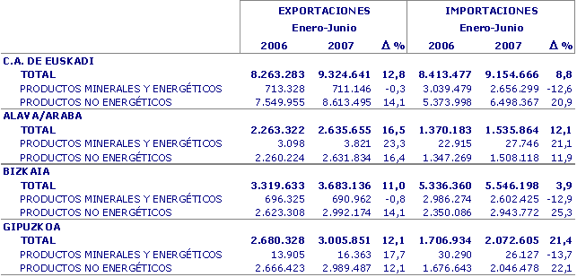 Las exportaciones con destino a la Unión Europea-27 han registrado un aumento del 15,4%, creciendo un 9,7% las dirigidas a Francia y un 21,8% las orientadas a Alemania, sumando entre los dos principales clientes comerciales de la C.A. de Euskadi un 48,2% de las exportaciones con destino a la Unión Europea. Subieron también, las destinadas a Italia (1,3%), Reino Unido (7,7%), Portugal (17,7%), Bélgica (37,4%) y los Países Bajos (60,2%). Bajaron, en cambio, las ventas en Estados Unidos (-15,6%). Las importaciones provenientes de la Unión Europea han aumentado su valor en un 16,6%, creciendo un 17,1% las provenientes de Alemania, un 18,8% las de Francia, del Reino Unido un 19,3% y un 25,9% las de Italia. Las importaciones que vienen de Estados Unidos aumentaron un 22,9%. El saldo comercial con la Unión Europea mejoró gracias al aumento del saldo exterior con Alemania y Portugal, a pesar de la disminución de Francia, Italia y Reino Unido.