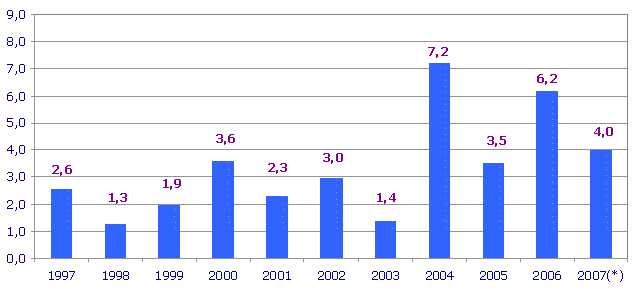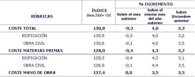 En el mes de setiembre los mayores crecimientos de los precios se han producido en las materias primas consumidas de Derivados del petróleo (3,6%), Productos asfálticos (3,0%), Vidrio (1,6%) y Cal, yeso y escayola (1,0%), entre otros. En sentido contrario, han tenido una reducción en sus precios las materias primas de Energía eléctrica (-5,1%), Hierro y acero (-2,5%) y Tubería metálica (-1,2%), entre otros.