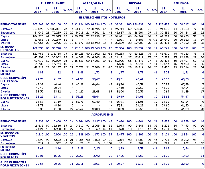 Entre los viajeros estatales se registra un aumento de los provenientes de Cataluña, Castilla y León, Galicia, Comunidad Valenciana y Navarra, principalmente, y descienden los provenientes de Madrid, Asturias, Castilla-La Mancha y Cantabria, entre otros. Entre los extranjeros suben los provenientes de Francia, Portugal, Italia y Reino Unido, entre otros, y bajan los de Holanda, Irlanda, USA-Canadá y Japón, entre otros.