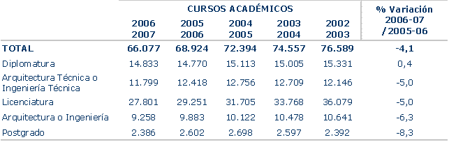 Las titulaciones más solicitadas fueron: Ingeniería Técnica Industrial (6.567), Magisterio (5.671), Administración y Dirección de Empresas (5.161), Ciencias Empresariales (4.011) e Ingeniería Industrial (3.024). Las inscripciones en estas cinco carreras representaron, en este curso académico, el 40% de las matriculaciones. En cuanto a la elección por parte de las mujeres cabe señalar: Magisterio (4.272), Administración y Dirección de Empresas (2.956), Psicología (2.183), Diploma en Ciencias Empresariales (2.151) y Derecho (1.631), entre las más solicitadas.