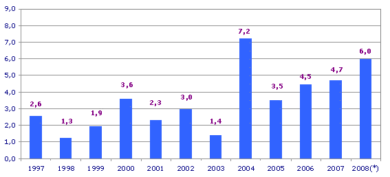 Tasas de variación interanual, 1997-2008