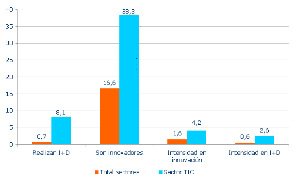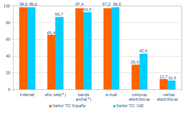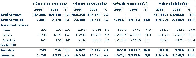 El sector TIC se define según los criterios adoptados por la OCDE, incluyendo todas aquellas actividades económicas, tanto de tipo industrial como de servicios, cuyo denominador común es su relación con la industria de la información y comunicación. Las actividades de la CNAE93 Rev.1 que se incluyen en este sector se enumeran a continuación: 3001, 3002, 3130, 3210, 3220, 3230, 3320, 3330, 5160, 5167, 6420, 7133, 7210, 7221, 7222, 7230, 7240, 7250 y 7260.