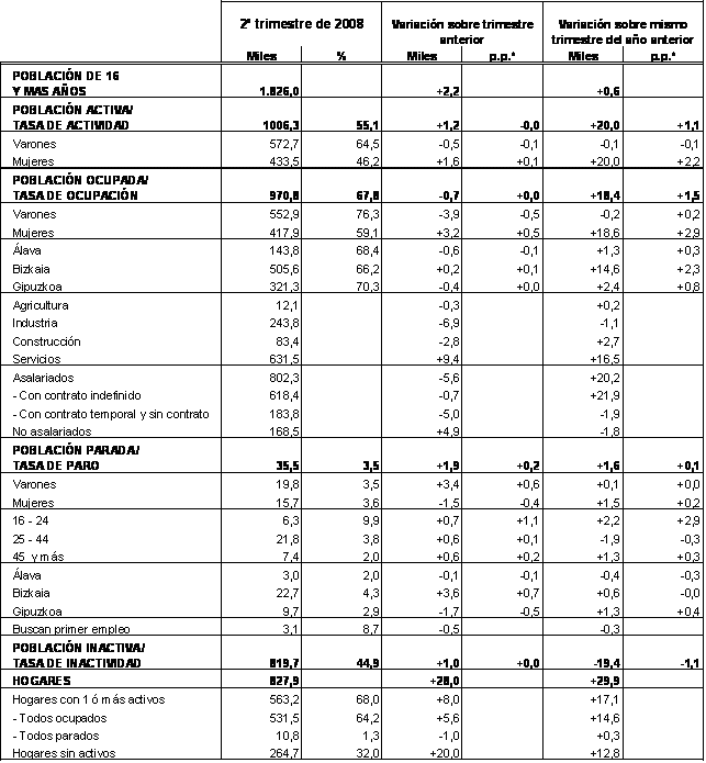 Los datos del segundo trimestre de 2008 ofrecen una tasa de paro que aumenta en dos décimas respecto al trimestre anterior, quedando en el 3,5%. La tasa de paro masculina sube al 3,5% (0,6 puntos porcentuales más) y la femenina baja cuatro décimas de punto, situándose en el 3,6%. La tasa de paro juvenil sigue siendo la más alta con el 9,9%, aumentando en 1,1 puntos porcentuales, afectando el desempleo a 6.300 jóvenes activos de 16 a 24 años.