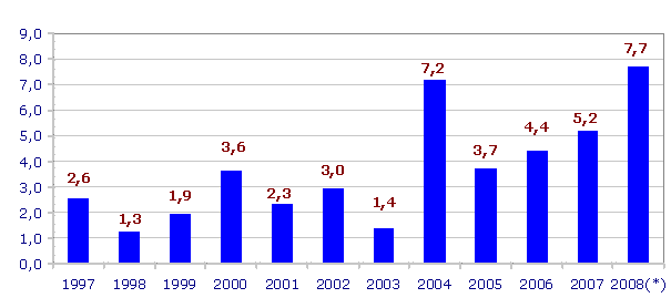 En el mes de julio los mayores crecimientos de los precios se han producido en las materias primas consumidas de Energía eléctrica y gas (5,1%), Fabricación de muebles (0,8%) y Material electrónico (0,5%). En sentido contrario, han tenido una reducción en sus precios el Refino de petróleo (-2,7%), Material eléctrico (-0,8%), la Industria no metálica (-0,2) y la Maquinaria (-0,1).