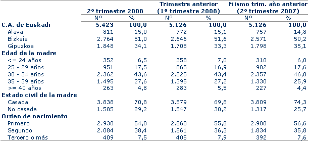 Los ocurridos fuera del matrimonio suponen el 29,2% del total, habiendo aumentado 3,5 puntos respecto al segundo trimestre de 2007. Álava, con el 32,7%, ha sido el único territorio con valores superiores al conjunto de la C. A. de Euskadi. En Bizkaia y en Gipuzkoa los porcentajes son ligeramente inferiores, 28,9% y 28,2%, respectivamente.
