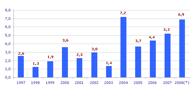 En el mes de noviembre, respecto a octubre, los mayores crecimientos de los precios se han producido en las materias primas consumidas de Minerales no metálicos (1,6%), Industria química (0,7%), Material electrónico (0,6%) y Material eléctrico (0,6%). En sentido contrario, han tenido una reducción en sus precios el Refino de petróleo (-12,7%), Metalurgia (-4,3%), Energía eléctrica y gas (-1,3%), Industria no metálica (-0,9%) y Fabricación de muebles (-0,1%).