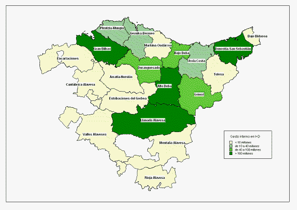 La comarca de Alto Deba -formada por los municipios de Antzuola, Aretxabaleta, Elgeta, Eskoriatza, Arrasate/Mondragón, Oñate, Leintz-Gatzaga y Bergara- lidera la relación de comarcas con mayor esfuerzo dedicado a gastos de I+D, alcanzando el 4,42% de su PIB en 2007, según datos elaborados por Eustat.