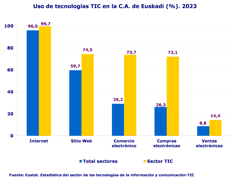 El sector TIC está compuesto por las industrias manufactureras y de servicios cuya actividad principal está vinculada con el desarrollo, producción, comercialización y uso intensivo de las tecnologías de la información y comunicación y que se caracteriza por altas tasas de innovación, progreso tecnológico y productividad, por lo que tiene un considerable impacto en la actividad económica. Web Eustat. Ficha metodológica: Sector TIC